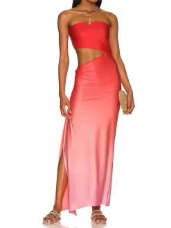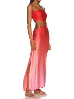 Women Gradient Color Strapless Long Dress Sleeveless Cut Out Slit Dress Evening Party Club Sexy Elegant Summer Dresses Female