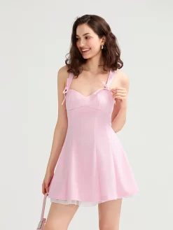 Women’s Summer Corset Mini Dress Fashion Sleeveless Bow Tie Strap Solid Color Tank Dress for Party Elegant Casual Sundress