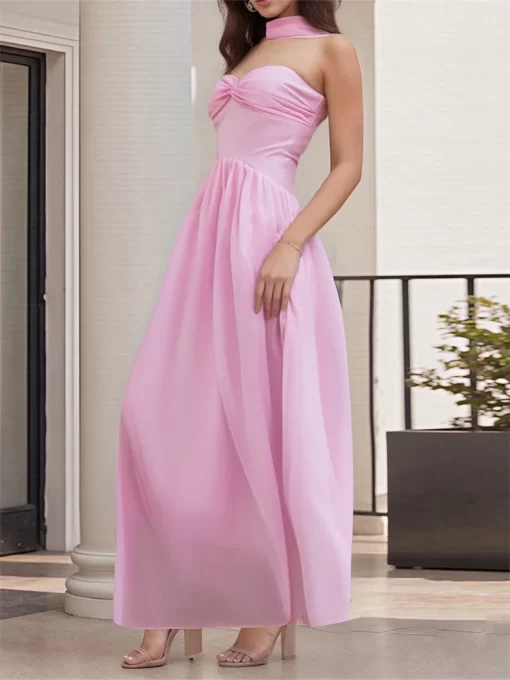 Women’s Elegant Tube Dress Strapless Twist Front Cut Out Bodycon Long Dress Solid Color Summer Party Dresses