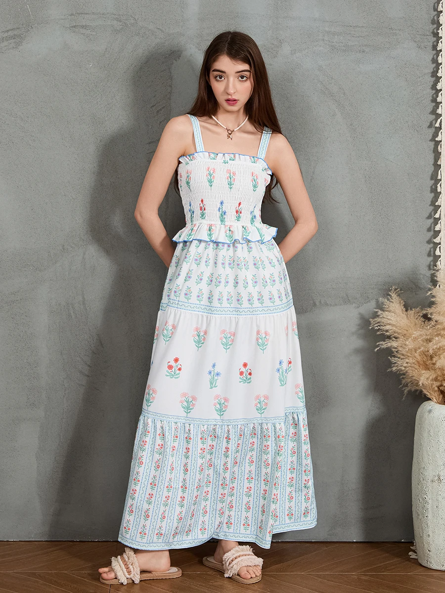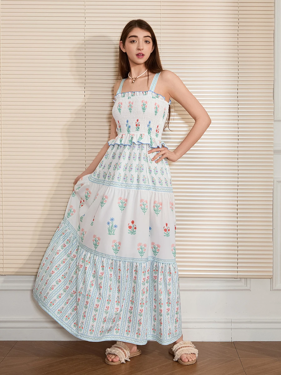 Women Slip Dress, Sleeveless Pleated Flower Dress Summer Long Swing Dress for Cocktail Party