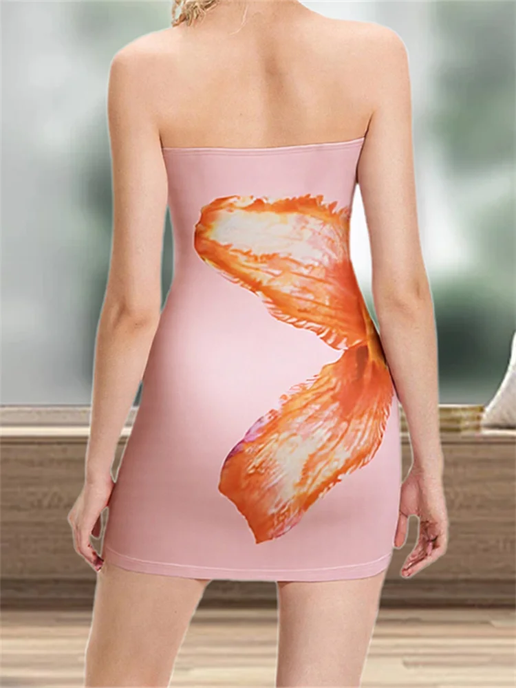 Women Flower Tube Top Dress Slim Off Shoulder Sleeveless Backless Mini Bodycon Dress for Party Club
