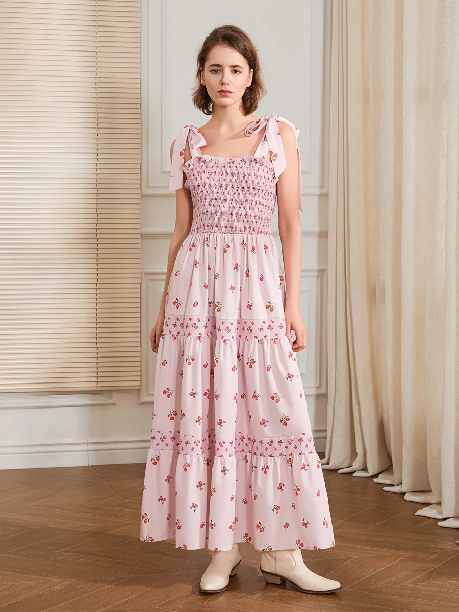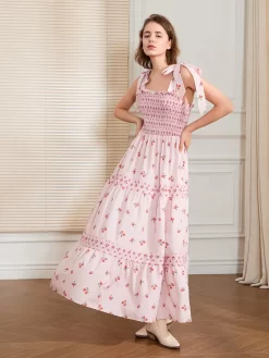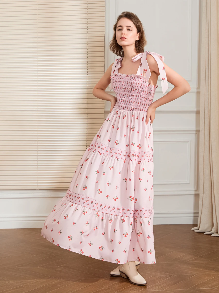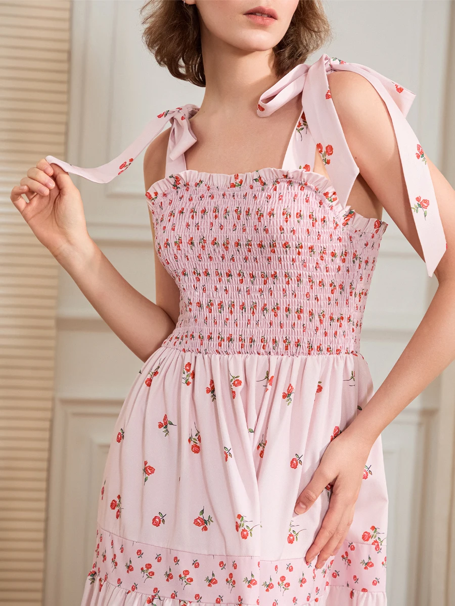 Women Slip Dress, Sleeveless Tie-up Floral Dress Summer Long Swing Dress for Daily Party