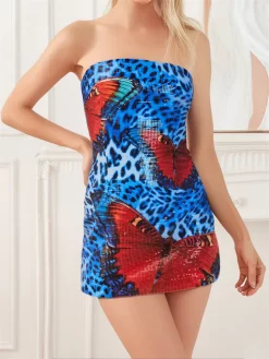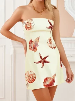 Women Mini Tube Top Dress Slim Flower//Starfish Off Shoulder Sleeveless Bodycon Dress for Party Club
