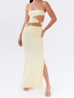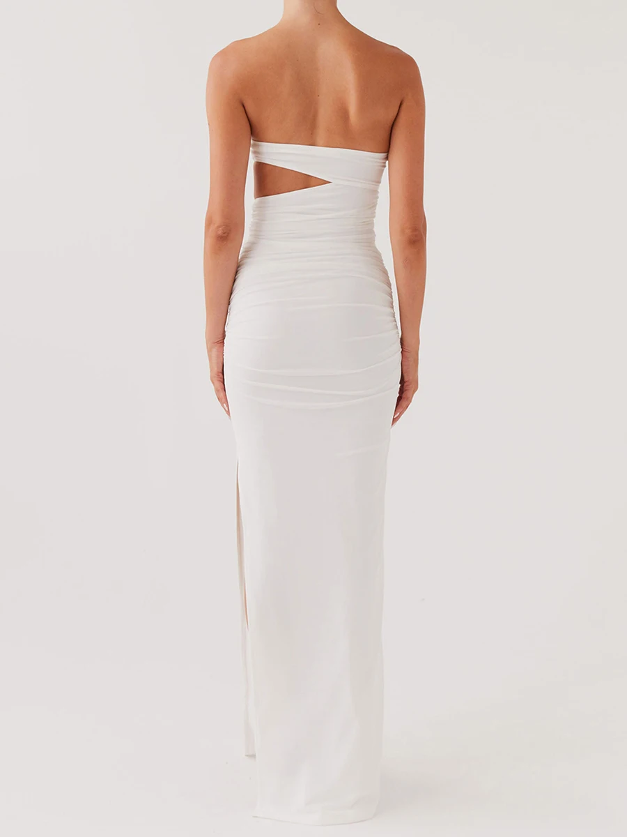 Women’s Strapless Dress Stylish Solid/Floral Print Hollow Out Sleeveless Tube Long Bodycon Dress for Summer