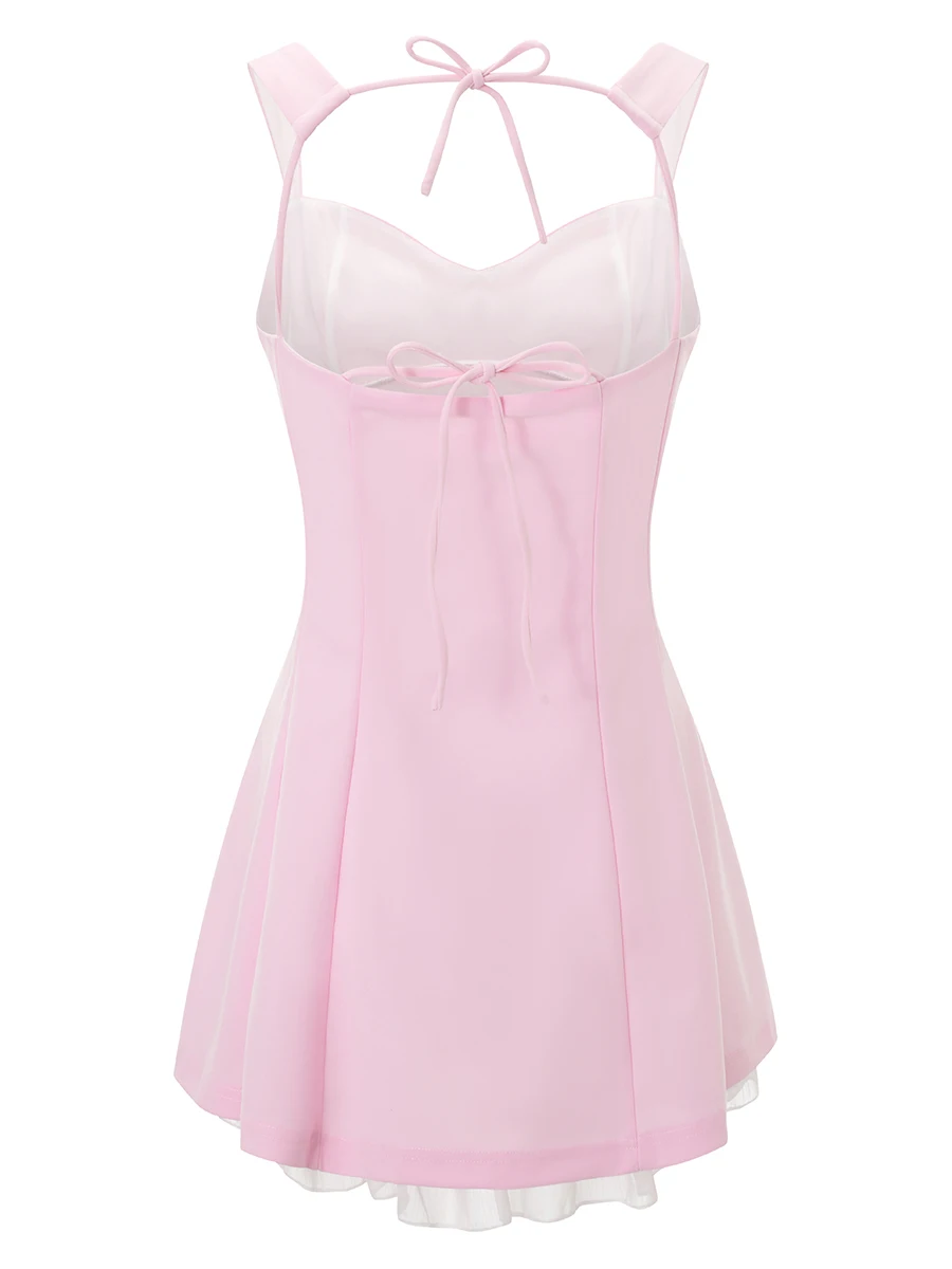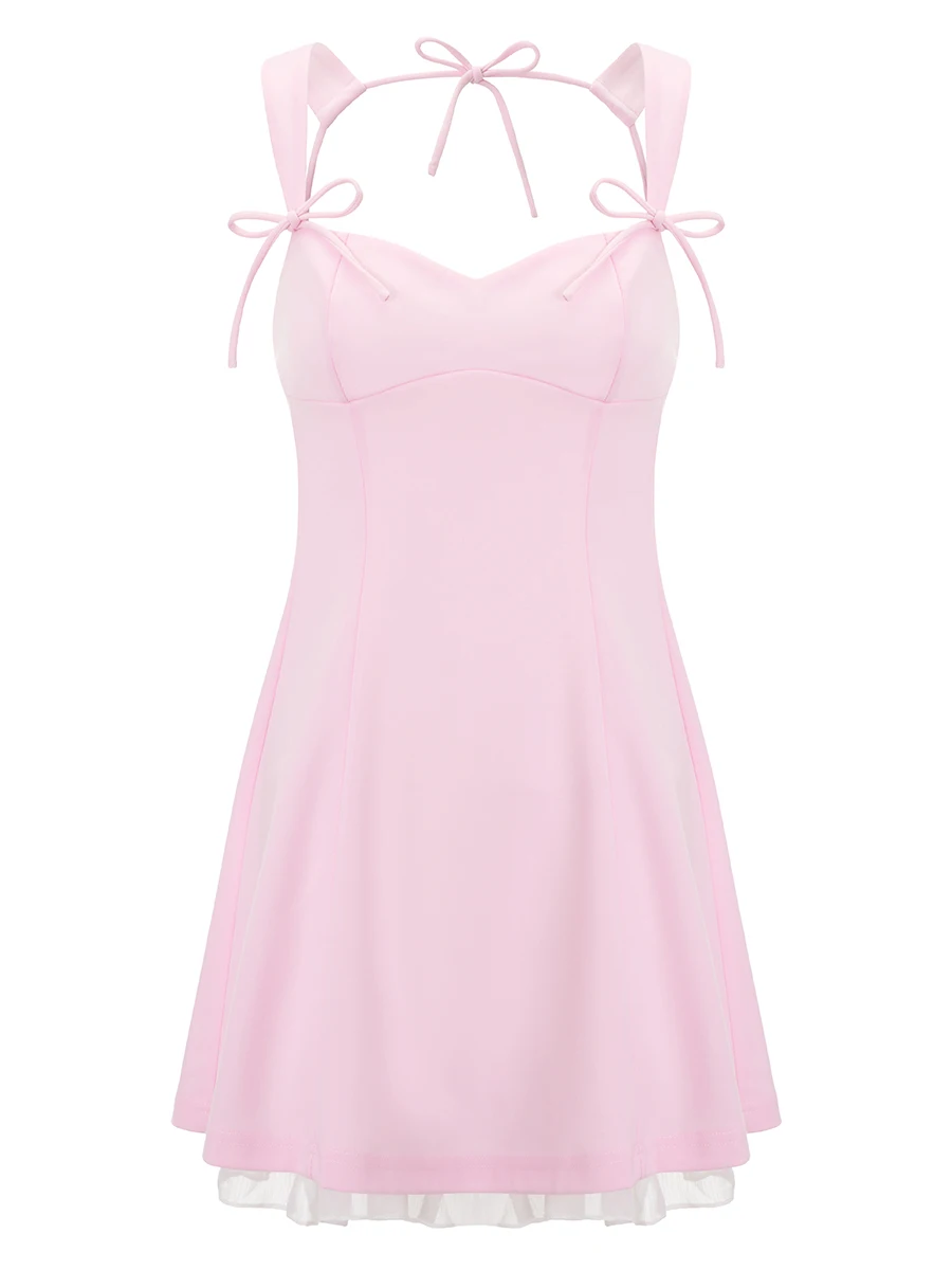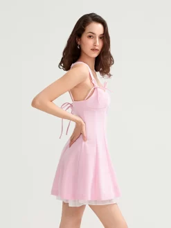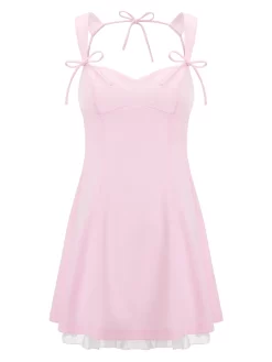 Womens Summer Corset Mini Dress Fashion Sleeveless Bow Tie Strap Solid Color Skater Tank Dress